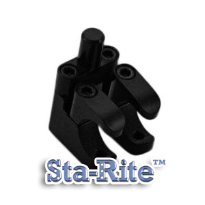 SINGLE Sta-Ritec: Fits Sta-Rite and AEL POSAlinc products. This product is the complete assembly including two 2-piece clamps with Serrated interior to 'grip the legrest and each with a set screw that means it will Stay Right where you put it and the mounting T for the adductor. Fits 1" tubing legrests.